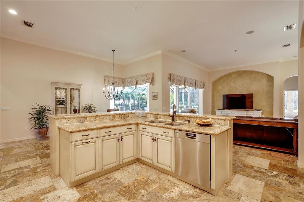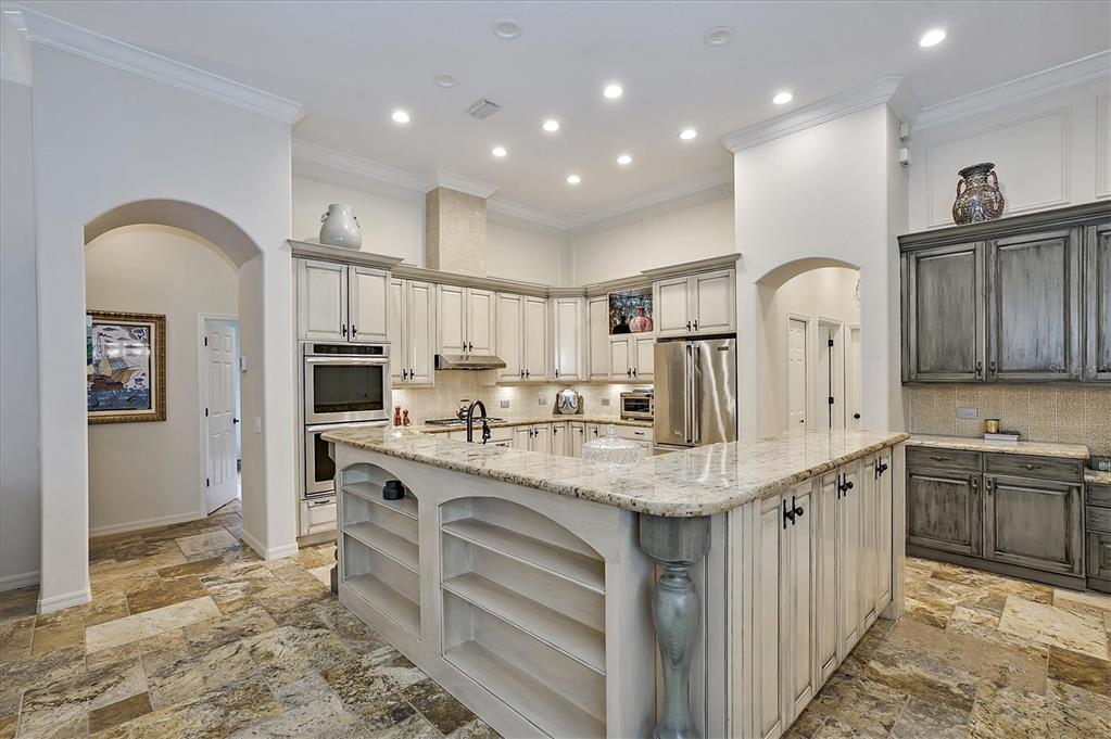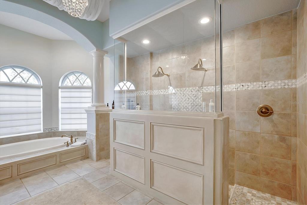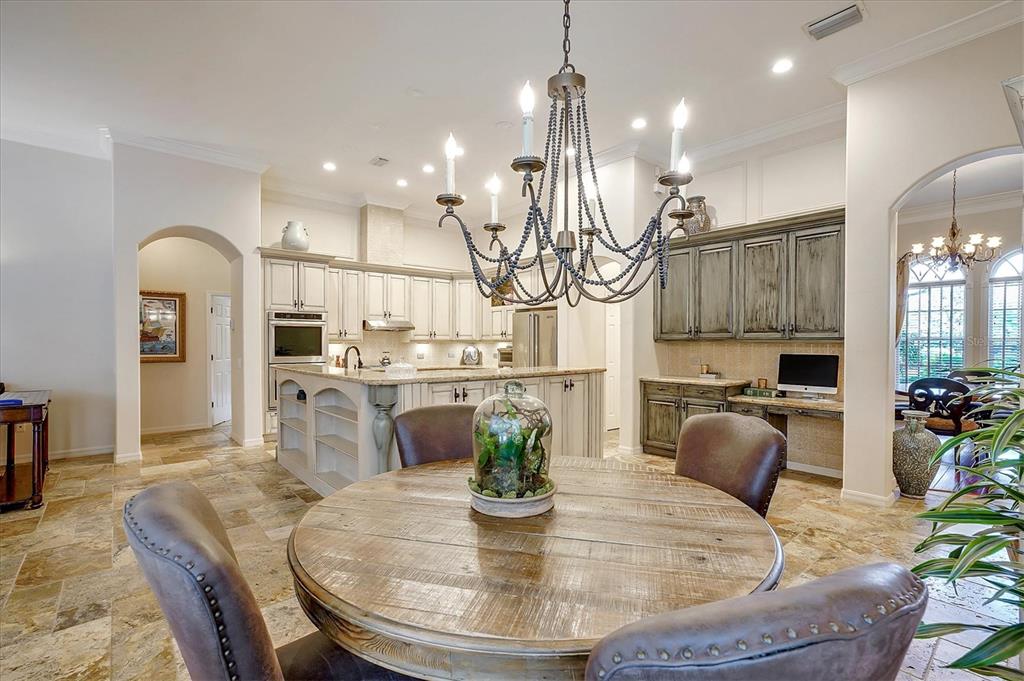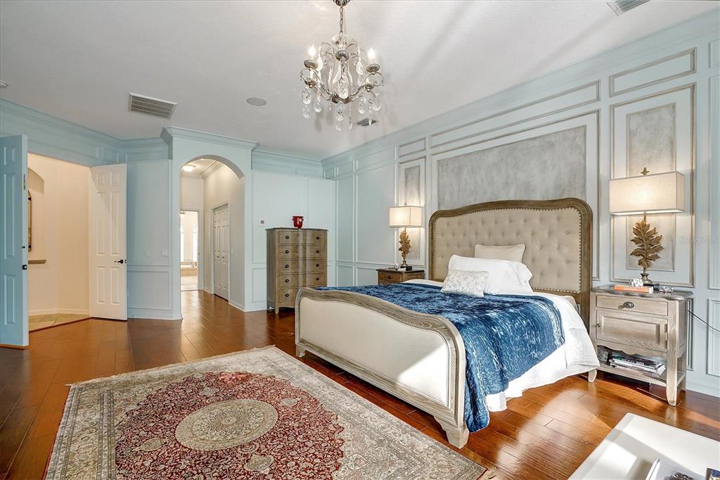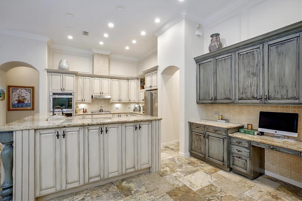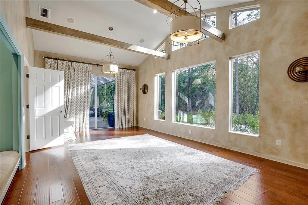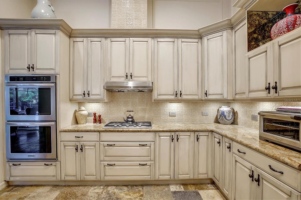 Back on the market! This home beckons buyers with discerning tastes for inviting sophistication and custom details. This beautifully renovated family pool home is in Tree Tops, an exclusive, private, gated community. After landing at Tampa International, a short drive will take you to your beautiful neighborhood and interior designed home that has been renovated to appeal to discerning tastes while keeping the home inviting and family-oriented. A custom designed, mahogany front door begins the list of high end finishes and improvements. High, tray ceilings greet you in the foyer and exquisite sitting room with a gas fireplace, imported Italian chandelier, built-in shelving and custom draperies. French pattern, brushed-chiseled travertine and cherry flooring is throughout the home. One floor living and a split bedroom plan bookend an open kitchen with custom cabinets, backsplash tile and stone countertops, a relaxing family room, and a stunning great room/library with built ins, a wall of windows and custom draperies, which all lead to a refurbished, caged saltwater, heated pool/spa, patio and private backyard. Custom millwork trim adorns the enviable office/5th bedroom and an imported Italian chandelier hangs from the high, tray ceiling in the Master Bedroom with en-suite bathroom and walk in closets. All bathrooms have been fully remodeled with quartz and/or marble vanities & shower/tub walls, custom cabinetry, Ferguson faucets and fixtures. A laundry room and three car garage make living here easy.